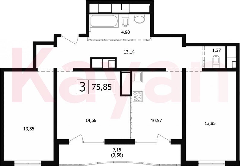 Продажа 3-комн. квартиры, 68.22 кв.м