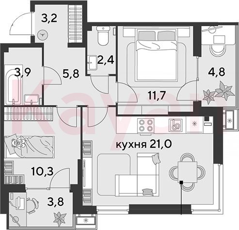 Продажа 3-комн. квартиры, 58.3 кв.м
