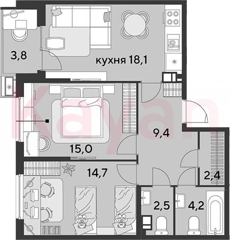 Продажа 3-комн. квартиры, 66.3 кв.м