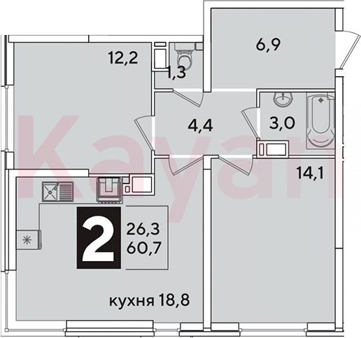 Квартира в ЖК Самолет (DOGMA. Краснодар) литер 39 очередь 6, Кирпично-монолитный, 3 к.кв., 60.7 кв.м., 13/16, высота потолков: 2.89 м, жилая площадь: 26.3 кв.м., возможна ипотека, возможна военная ипотека, площадь кухни 18.8 кв.м.,