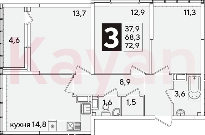 Продажа 3-комн. квартиры, 68.3 кв.м