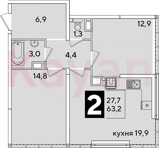 Продажа 3-комн. квартиры, 63.2 кв.м