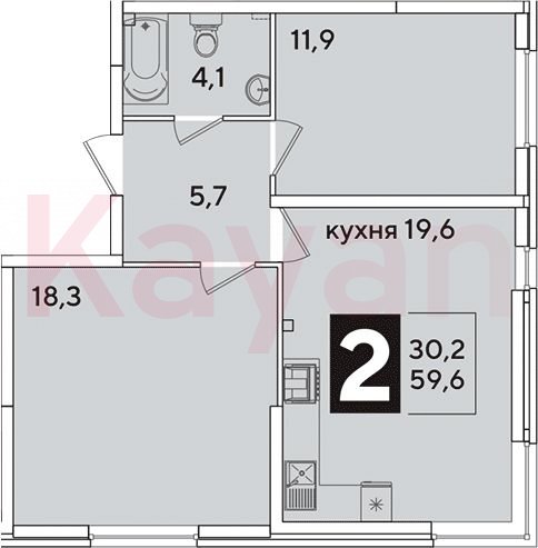 Квартира в ЖК Самолет (DOGMA. Краснодар) литер 48 очередь 6, Кирпично-монолитный, 3 к.кв., 59.6 кв.м., 2/16, высота потолков: 2.89 м, жилая площадь: 30.2 кв.м., возможна ипотека, возможна военная ипотека, площадь кухни 19.6 кв.м.,