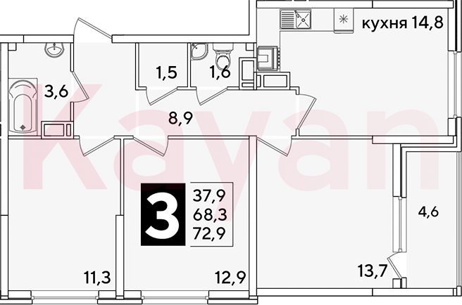 Продажа 3-комн. квартиры, 68.3 кв.м