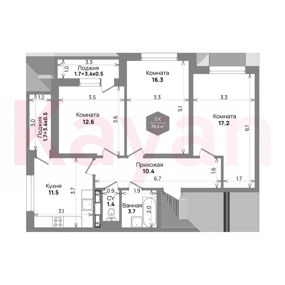 Продажа 3-комн. квартиры, 73.1 кв.м