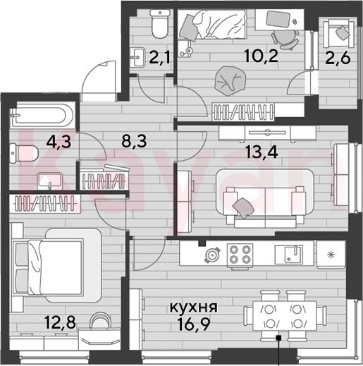 Продажа 3-комн. квартиры, 68 кв.м