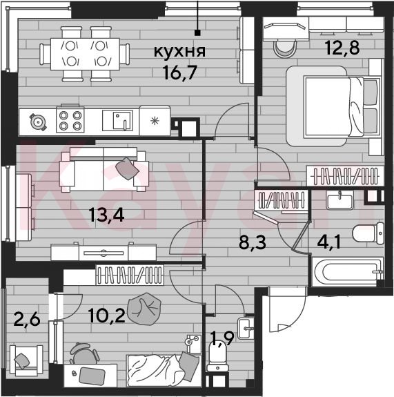 Квартира в ЖК «Dogma park (Догма парк)» (DOGMA. Краснодар) литер 20 очередь 2, Кирпично-монолитный, 3 к.кв., 67.4 кв.м., 3/19, высота потолков: 2.72 м, жилая площадь: 36.4 кв.м., возможна ипотека, возможна военная ипотека, площадь кухни 16.7 кв.м.,