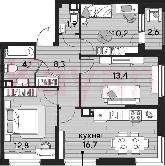 Продажа 3-комн. квартиры, 67.4 кв.м