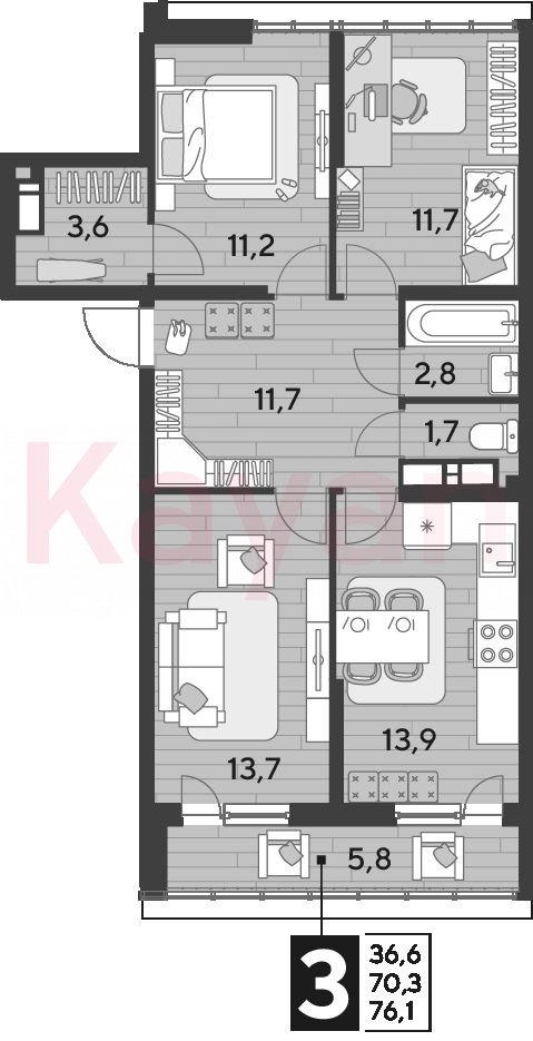 Продажа 3-комн. квартиры, 70.3 кв.м