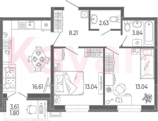 Продажа 3-комн. квартиры, 57.37 кв.м