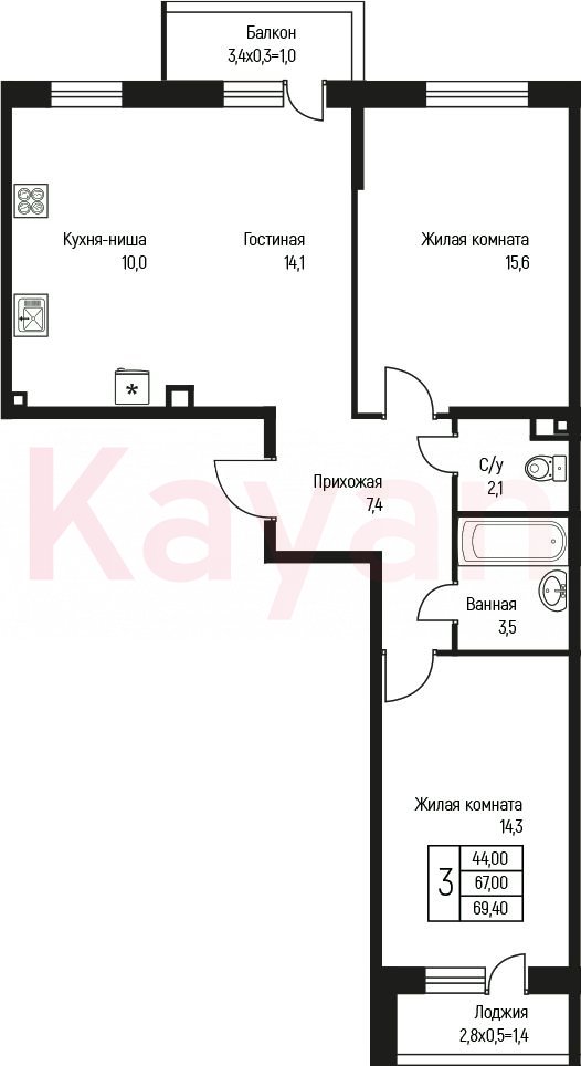 Продажа 3-комн. квартиры, 67.7 кв.м
