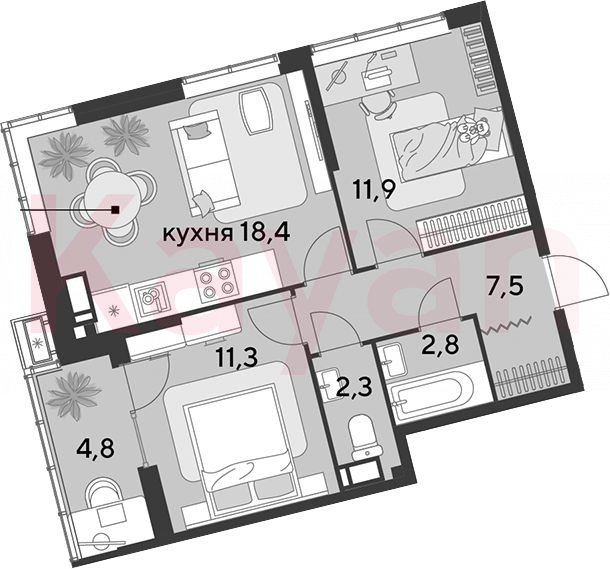 Продажа 3-комн. квартиры, 54.2 кв.м