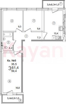 Продажа 3-комн. квартиры, 59.4 кв.м
