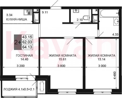 Продажа 3-комн. квартиры, 62.03 кв.м