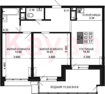Продажа 3-комн. квартиры, 62.57 кв.м