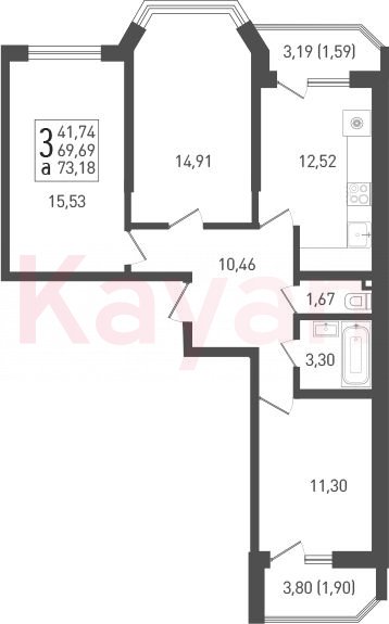 Продажа 3-комн. квартиры, 71.12 кв.м