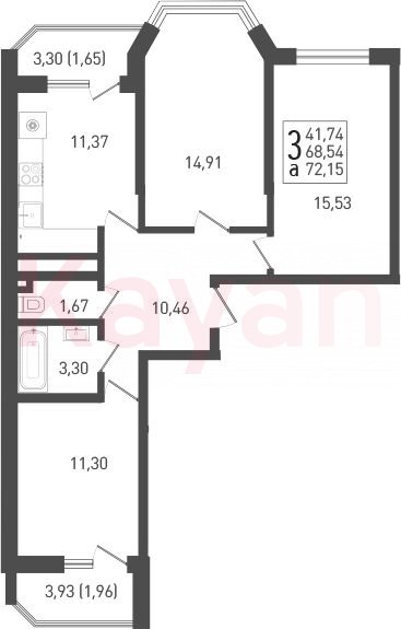 Продажа 3-комн. квартиры, 70.18 кв.м