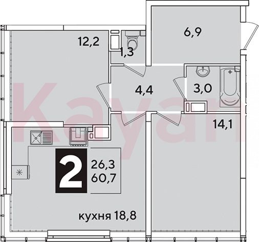 Продажа 3-комн. квартиры, 60.7 кв.м