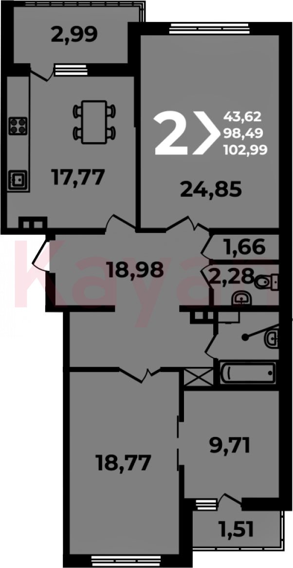 Продажа 3-комн. квартиры, 98.49 кв.м