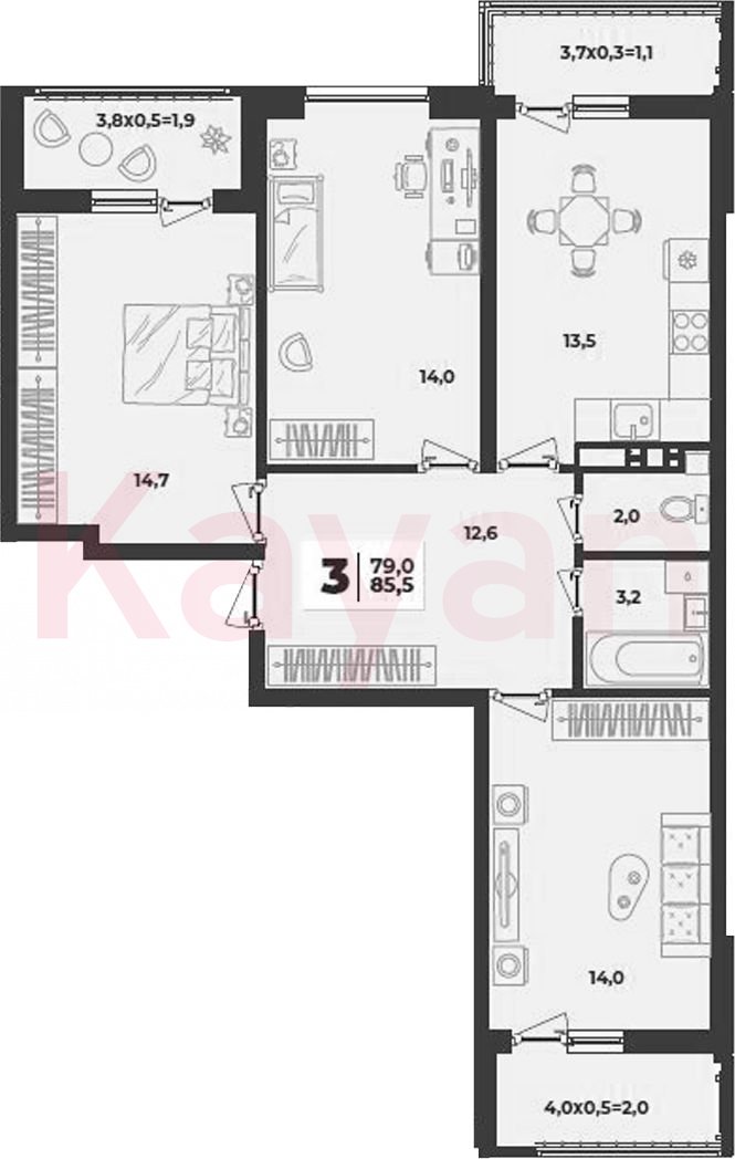 Продажа 3-комн. квартиры, 74 кв.м