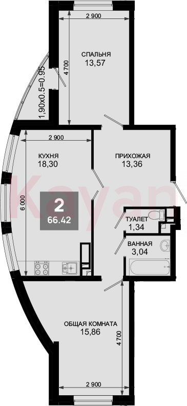 Квартира в ЖК «Лучший» (ССК. Краснодарский край) литер 11 очередь 4, Кирпично-монолитный, 3 к.кв., 65.47 кв.м., 3/19, высота потолков: 2.7 м, жилая площадь: 29.43 кв.м., возможна ипотека, площадь кухни 18.3 кв.м.,