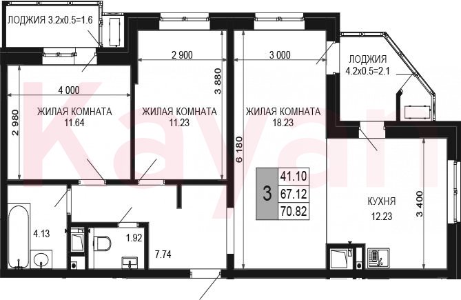 Продажа 3-комн. квартиры, 67.12 кв.м
