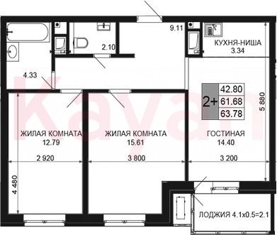 Продажа 3-комн. квартиры, 61.68 кв.м