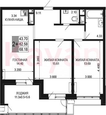 Продажа 3-комн. квартиры, 62.58 кв.м