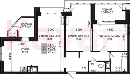 Продажа 3-комн. квартиры, 70.62 кв.м