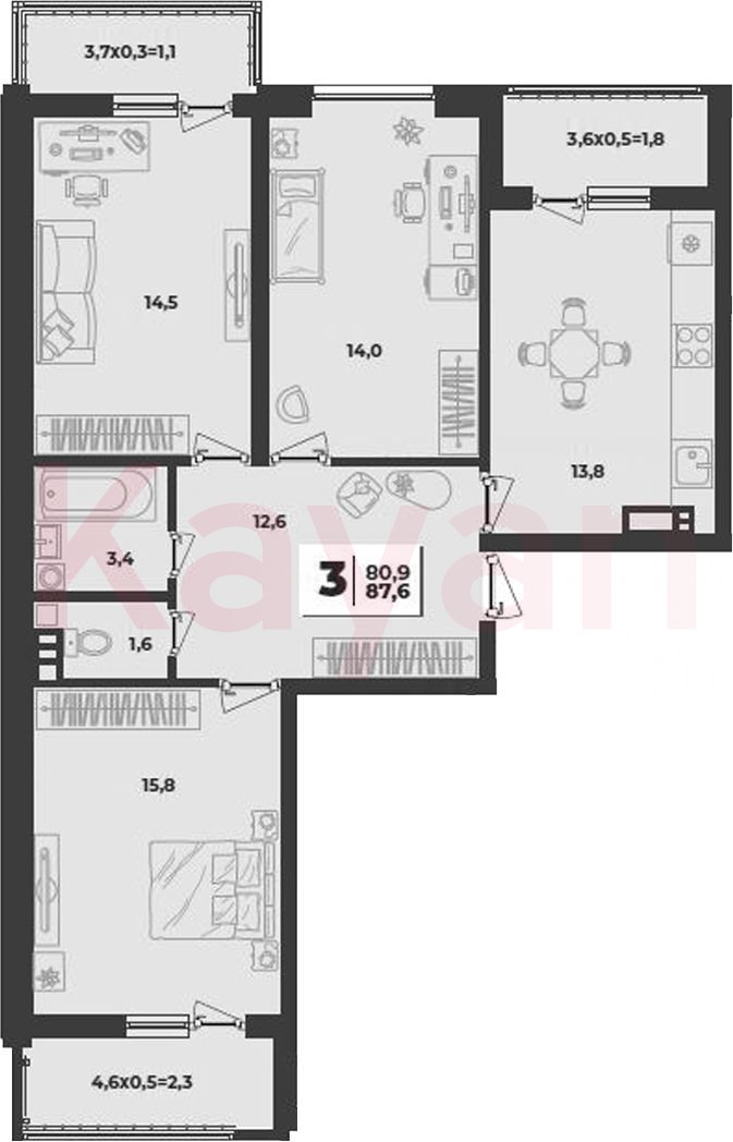 Квартира в ЖК «Лето» (Дарстрой) литер 1.3 очередь 1, Кирпично-монолитный, 3 к.кв., 75.7 кв.м., 2/9, высота потолков: 2.7 м, жилая площадь: 44.3 кв.м., возможна ипотека, площадь кухни 13.8 кв.м.,