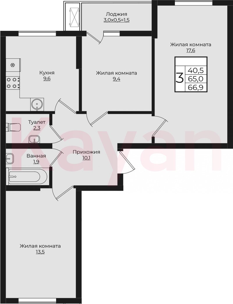 Продажа 3-комн. квартиры, 65.4 кв.м