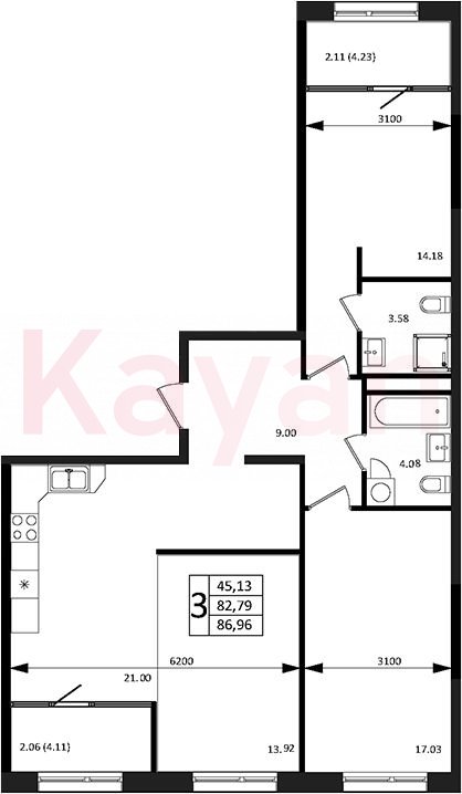Продажа 3-комн. квартиры, 82.79 кв.м