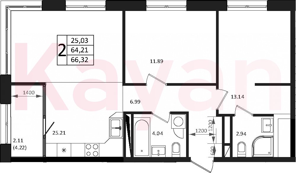 Продажа 3-комн. квартиры, 64.21 кв.м