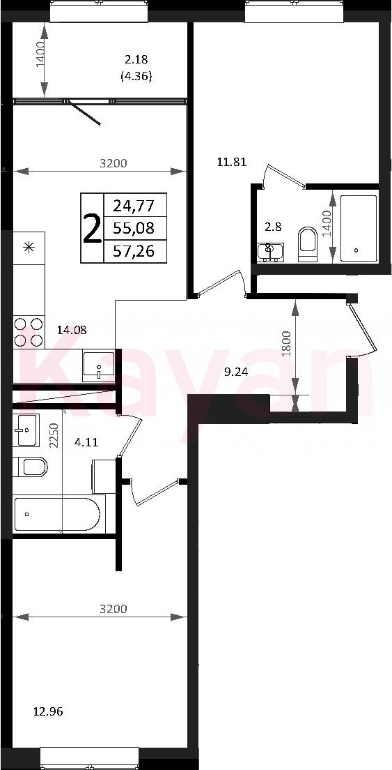Квартира в ЖК «Патрики» (ГК Точно. Краснодарский край) литер 5.1 очередь 2, Кирпично-монолитный, 3 к.кв., 55.08 кв.м., 6/7, высота потолков: 2.8 м, жилая площадь: 24.77 кв.м., возможна ипотека, площадь кухни 14.08 кв.м.,