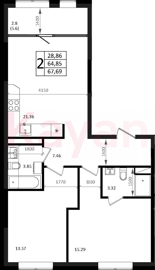 Продажа 3-комн. квартиры, 64.88 кв.м