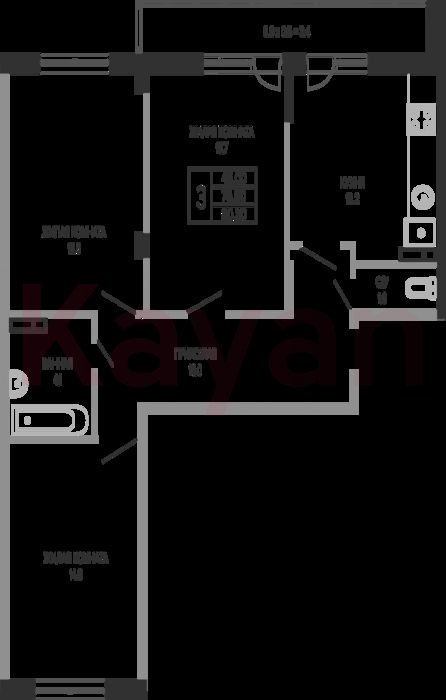 Квартира в ЖК «Екатерининский парк» (ЕкатеринодарИнвестСтрой) литер 6 очередь 2, Кирпично-монолитный, 3 к.кв., 76.9 кв.м., 5/17, высота потолков: 2.85 м, жилая площадь: 46 кв.м., возможна ипотека, возможна военная ипотека, площадь кухни 12.2 кв.м.,