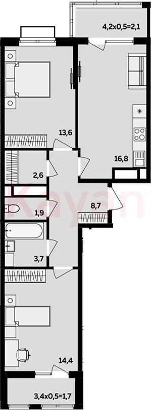Продажа 3-комн. квартиры, 61.7 кв.м