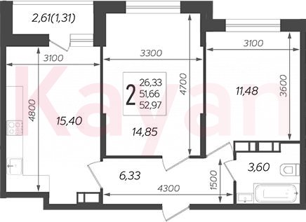 Продажа 3-комн. квартиры, 51.66 кв.м