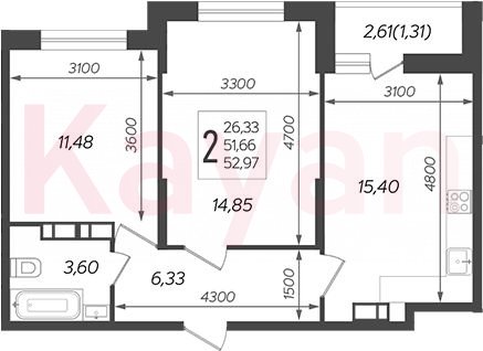 Продажа 3-комн. квартиры, 51.66 кв.м
