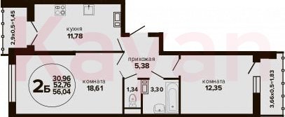 Продажа 3-комн. квартиры, 52.76 кв.м