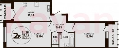 Квартира в ЖК «Гулливер» (ЕкатеринодарИнвестСтрой) литер 3 очередь 2, Кирпично-монолитный, 3 к.кв., 53.32 кв.м., 15/24, высота потолков: 2.72 м, жилая площадь: 31.38 кв.м., возможна ипотека, возможна военная ипотека, площадь кухни 11.84 кв.м.,