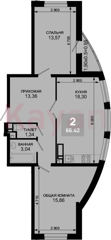Продажа 3-комн. квартиры, 65.47 кв.м