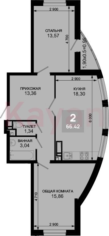 Квартира в ЖК «Лучший» (ССК. Краснодарский край) литер 12 очередь 5, Кирпично-монолитный, 3 к.кв., 65.47 кв.м., 18/19, высота потолков: 2.7 м, жилая площадь: 29.43 кв.м., возможна ипотека, площадь кухни 18.3 кв.м.,