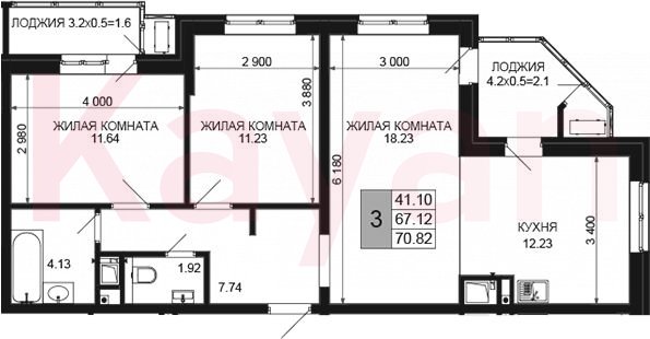 Продажа 3-комн. квартиры, 67.12 кв.м