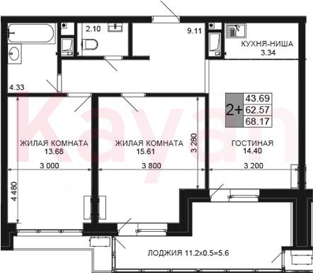 Продажа 3-комн. квартиры, 62.57 кв.м