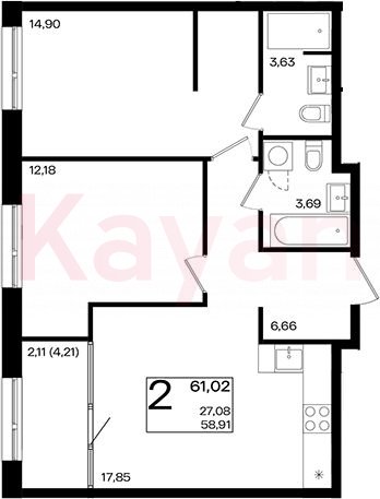 Продажа 3-комн. квартиры, 58.91 кв.м