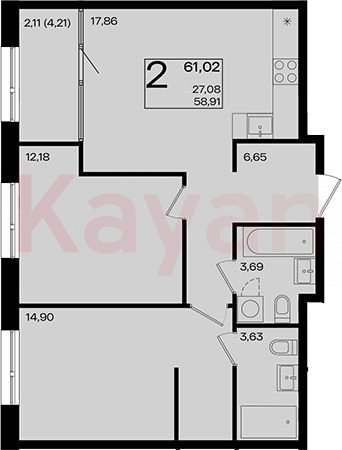 Продажа 3-комн. квартиры, 58.91 кв.м