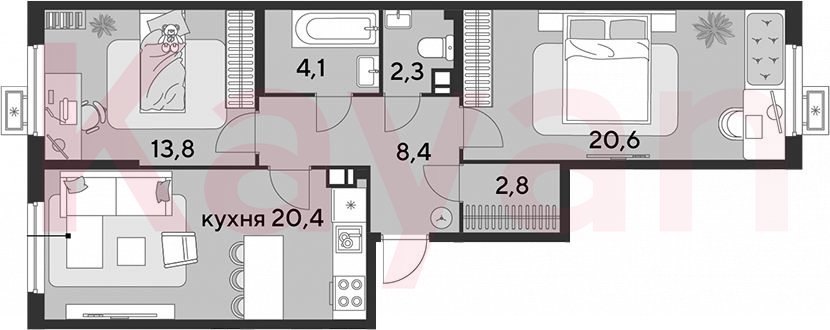 Продажа 3-комн. квартиры, 72.4 кв.м