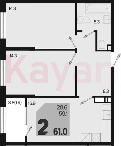 Продажа 3-комн. квартиры, 59.1 кв.м