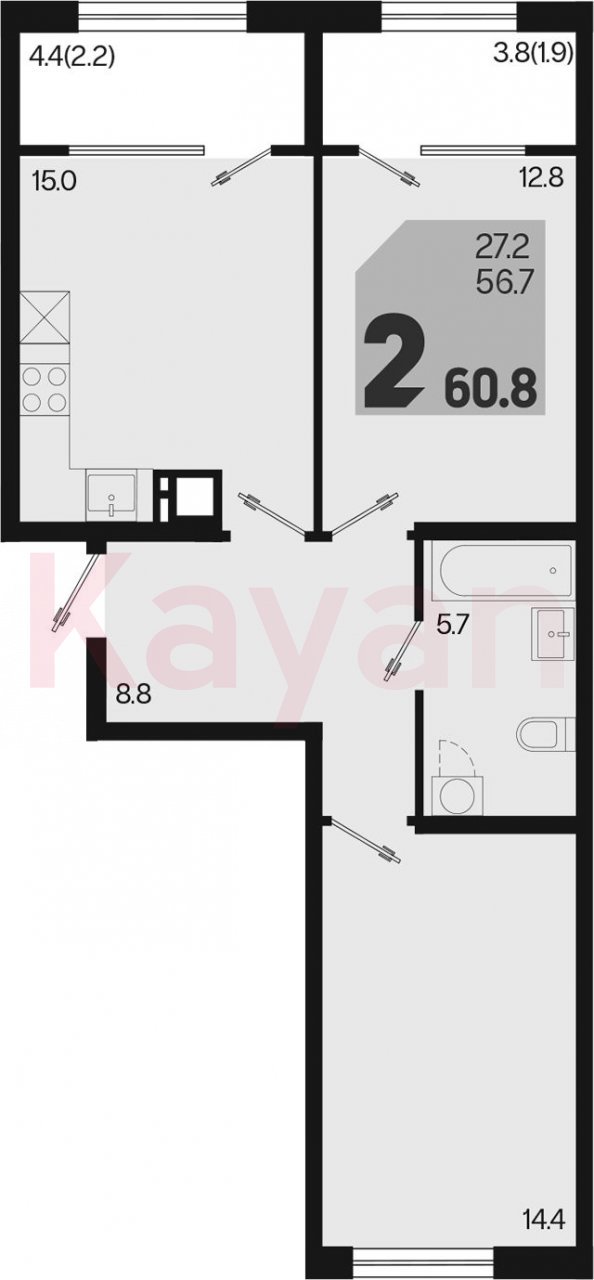 Продажа 3-комн. квартиры, 56.7 кв.м